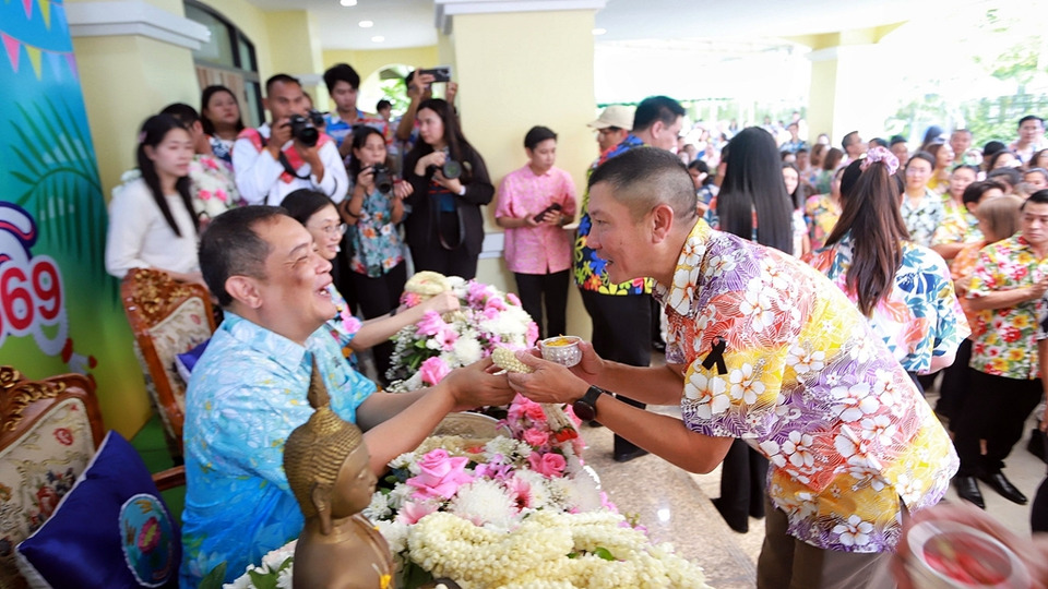 โอกาสเดียวกันนี้นายเอกวิทย์ มีเพียร ผู้ว่าราชการจังหวัดปทุมธานี ได้อวยพรขอให้ผู้ที่มาร่วมงานทุกภาคส่วนได้มีสุขภาพร่างกายแข็งแรง มีความเจริญก้าวหน้าในหน้าที่การงาน หวังสิ่งใดขอให้สมหวังดั่งปรารถนาทุกประการ และขอให้ทุกคนมีความสุขในเทศกาลสงกรานต์ในปีนี้