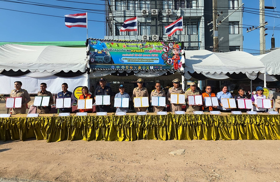 เมื่อเวลา 16.00 น. วันที่ 10 เม.ย.69 ที่บริเวณหน้าที่ทำการสำนักงานเทศบาลตำบลทับมา ถนนบายพาสสาย 36 ม.4 ต.ทับมา อ.เมือง จ.ระยอง นายอรรถกร ผาสุข ปลัดอำเภอหัวหน้ากลุ่มงานบริหารงานปกครอง อำเภอเมืองระยอง เป็นประธานเปิดศูนย์ปฏิบัติการป้องกันและลดอุบัติเหตุทางถนน ช่วงเทศกาลสงกรานต์ ปี 2569 "ขับขี่ปลอดภัย ลดความเร็ว ลดอุบัติเหตุ" วันที่ 10-16 เม.ย.นี้ มีนายสุทิน แก้วประถม นายกเทศมนตรีตำบลทับมา นำผู้บริหาร เจ้าหน้าที่เทศบาล หน่วยงานที่เกี่ยวข้อง เข้าร่วมงาน โดยในงานเทศบาลตำบลทับมา ยังได้ลงนาม MOU กับหน่วยงานและเอกชนที่เกี่ยวข้อง ในการบูรณาการการดำเนินงานการจัดตั้ง และขับเคลื่อนศูนย์ปฎิบัติการป้องกันและลดอุบัติเหตุทางถนน ช่วงเทศกาลสงกรานต์ ปี 2569 ดังกล่าวด้วย