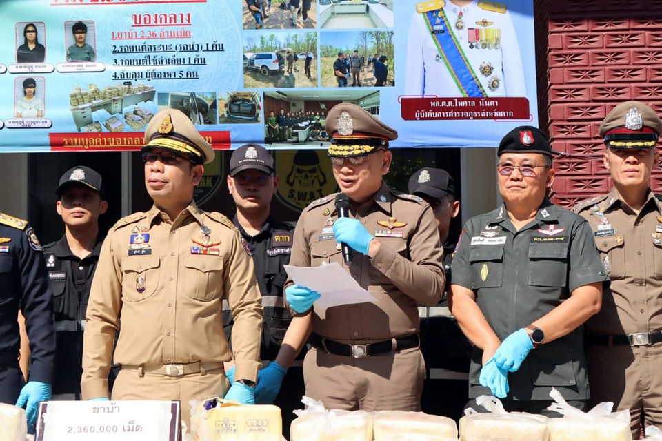ตากแถลงจับกุมเครือข่ายค้ายาบ้ารายใหญ่ ยึดของกลาง 2.36 ล้านเม็ด ตามนโยบาย “Quick Big Win” รวบผู้ต้องหา 5 ราย รับจ้างขนจากเชียงรายส่งอยุธยา ค่าจ้างสูง 7 แสนบาท เร่งขยายผลล่าตัวการใหญ่
