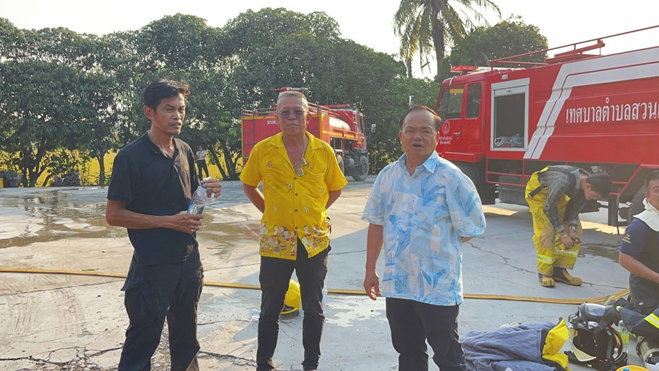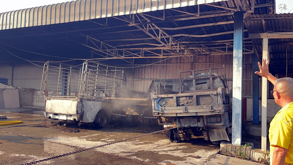 เกิดเหตุไฟไหม้โรงจอดรถร้านวัสดุก่อสร้าง อ.เมืองสุพรรณบุรี รถกระบะและรถบรรทุก 6 ล้อรวม 3 คันเสียหายหนัก มูลค่านับล้านบาท ตำรวจเร่งตรวจสอบกล้องวงจรปิดหาสาเหตุไฟปริศนา