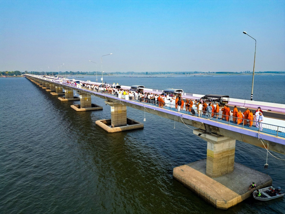 กาฬสินธุ์จัดพิธีสมมาน้ำบูชาปู่เชียงโสมกลางเขื่อนลำปาวและสะพานเทพสุดา ชาวบ้านร่วมคับคั่ง เสริมศรัทธา–ท่องเที่ยวสงกรานต์ คาดเงินสะพัดกว่า 10 ล้านบาทในพื้นที่