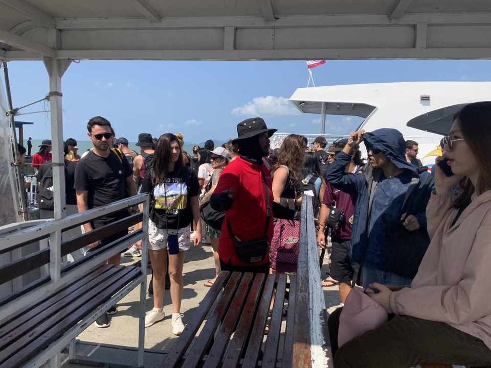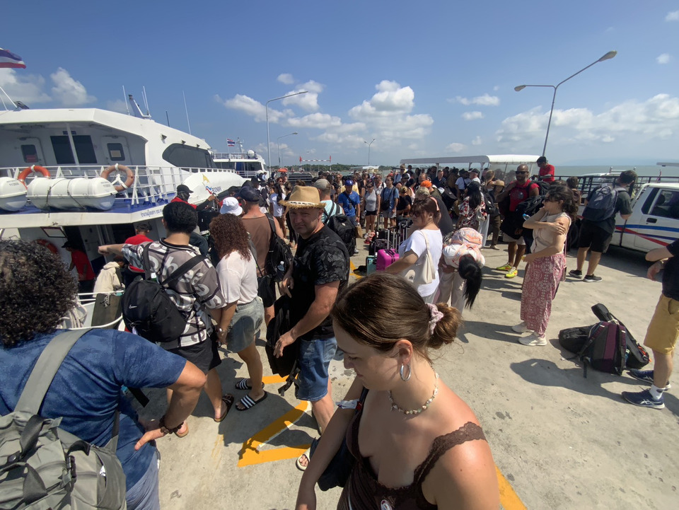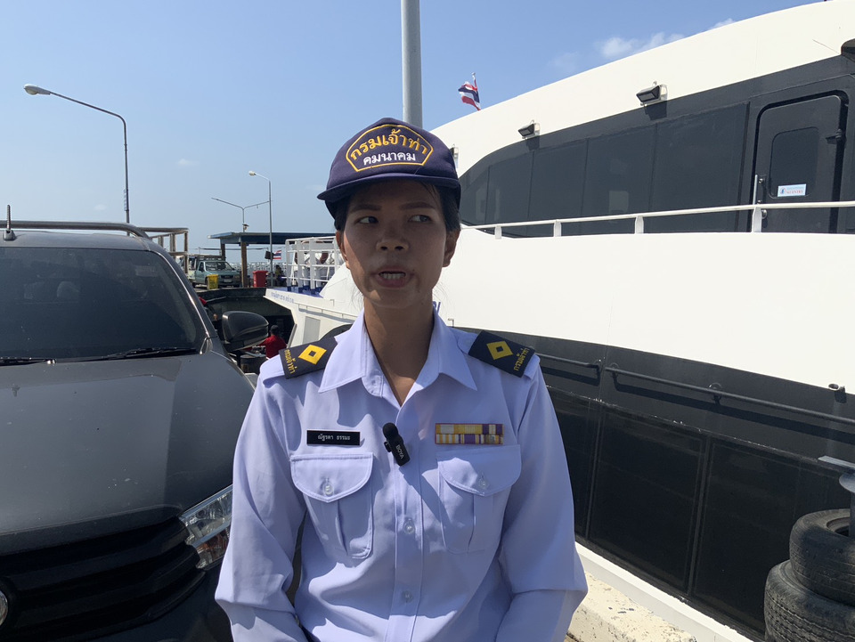 นางสาวณัฐรดา ธรรมมะ เจ้าหน้าที่สำนักงานเจ้าท่าตราด ที่มาเฝ้าระวังและอำนวยสะดวกให้นักท่องเที่ยว กล่าวว่า วันนี้จำนวนนักท่องเที่ยวมีจำนวนมากกว่าทุกวัน ซึ่งได้รับทราบว่า วันนี้จะมีนักท่องเที่ยวกว่า 2,000 คนเดินทางลงไปเกาะหมากและเกาะกูด ซึ่งทางสำนักงานเจ้าท่าได้มอบหมายให้ดูแลนักท่องเที่ยวในการลงเรือ เข้มงวดเรื่องจำนวนผู้โดยสารและแนะนำในเรื่องการเดินทางระหว่างนี้ที่อาจจะมีคลื่นลม อาจจะทำให้เมาเรือได้ ซึ่งวันนี้เที่ยวเรือเที่ยวสุดท้ายจะมีถึง 16.00 น.