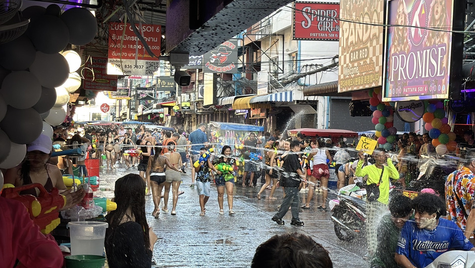 พัทยาเดือด! บาร์เบียร์ซอย 6 เปิดศึกสาดน้ำวันแรกคึกคัก นักท่องเที่ยวแห่เล่นสงกรานต์แน่นถนน