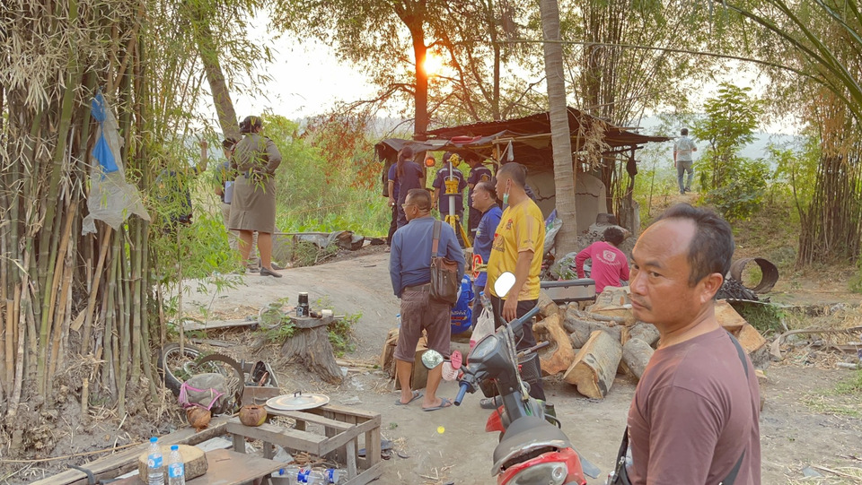 ด้านนายสมพร มังคลา อายุ 46 ปี พี่เขย กล่าวว่าตอนแรกเดินมาวนดูรอบๆ แล้วเห็นมีไฟฉายอยู่ เลยส่องเข้าไปดูข้างในเตาเผา ซึ่งก็เห็นเป็นโครงกระดูกแต่ไม่แน่ใจว่าใช่หรือไม่ เลยโทรเรียกญาติๆมาดู พอญาติมาดูเลยถามว่าเห็นเหมือนกันใช่ไหม จากนั้นจึงได้โทรแจ้งตำรวจให้มาดู ซึ่งตอนที่มาดู ที่เห็นเป็นโครงกระดูกก็ยังมีไฟติดอยู่ในเตา โดยผู้เสียชีวิต เป็นน้องของภรรยา อายุ 36 ปีมีอาชีพเผาถ่าน