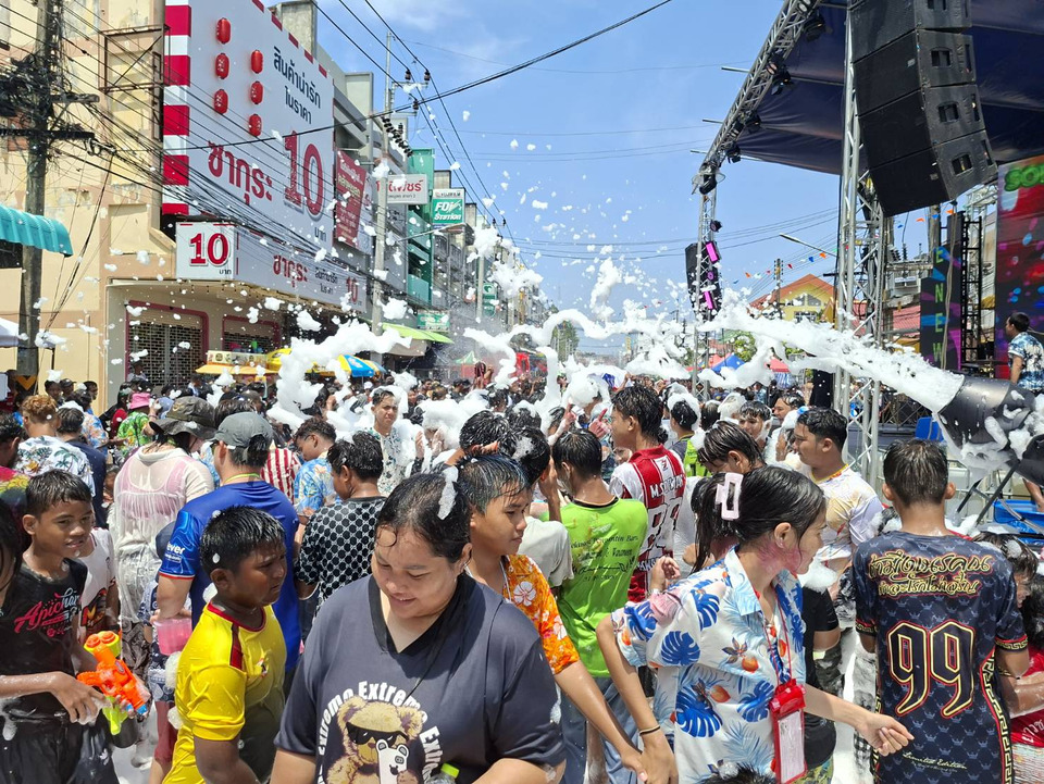 นอกจากนี้ ภายในพื้นที่ยังมีการจัดกิจกรรมสร้างความบันเทิงอย่างหลากหลาย ทั้งการเปิดเพลง การจัดปาร์ตี้โฟมในบางจุด ส่งผลให้บรรดาหนุ่มสาวออกมาเต้นรำและเล่นสาดน้ำกันอย่างสนุกสนาน ท่ามกลางบรรยากาศแห่งความสุขและรอยยิ้ม สะท้อนถึงสีสันของเทศกาลสงกรานต์ในจังหวัดชายแดนภาคใต้ที่กลับมาคึกคักอีกครั้งในปีนี้ ทามกลางเจ้าหน้าที่ตำรวจคอยดูแลรักษาความปลอดภัยตลอดงานด้วย