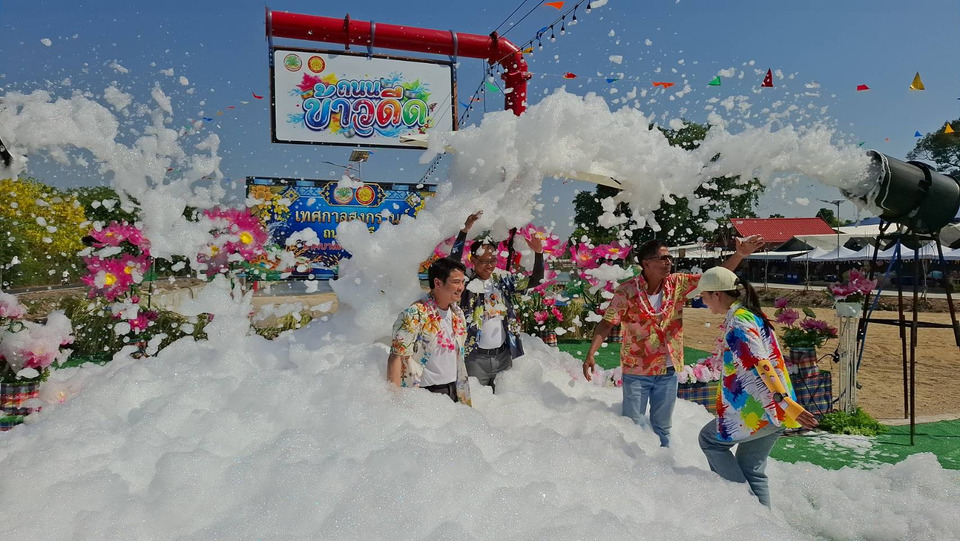 “ภราดร” เปิดสงกรานต์ “ถนนข้าวดีด” อ่างทอง สาดความสุข-กดปุ่มปาร์ตี้โฟมสุดคึกคัก