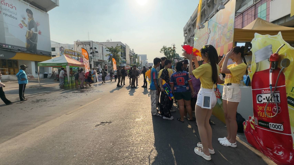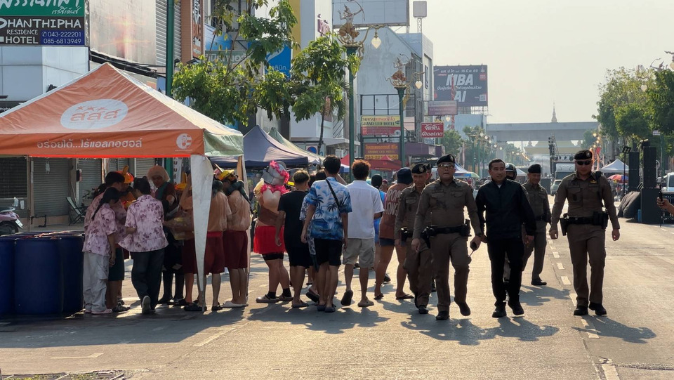 เมื่อเวลา 16.30 น.วันที่ 13 เม.ย.2569 ที่บริเวณถนนข้าวเหนียว ตลอดแนวถนนศรีจันทร์ เขตเทศบาลนครขอนแก่น สถานที่ที่เทศบาลนครขอนแก่น ร่วมกับหน่วยงานภาครัฐและเอกชนได้กำหนดปิดถนนเล่นน้ำสงกรานต์ในงานประเพณีสุดยอดสงกรานต์อีสานเทศกาลดอกคูณเสียงแคนและถนนข้าวเหนียว ประจำปี 2569 พ.ต.อ.ชินวัตร ศรีสวัสดิ์ รอง ผบก.ภ.จว.ขอนแก่น พร้อมด้วย พ.ต.อ.ยศวัจน์ แก้วสืบธัญนิจ ผกก.สภ.เมืองขอนแก่น,พ.ต.ท.เมธี ศรีวันนา รอง ผกก(ป.) สภ.เมืองขอนแก่น และ พ.ต.ท.รัฐปิติ ประเสริฐสม สวญ.สทท.2 กก.1 (ตำรวจท่องเที่ยวขอนแก่น) ได้ร่วมกันปล่อยแถวกำลังเจ้าหน้าที่ตำรวจทั้งในปละนอกเครื่องแบบ รวมทั้งเจ้าหน้าที่ฝ่ายปกครอง,อปพร., ปปส.,และสาธารณสุข เพื่อปฎิบัติหน้าที่อำนวยความสะดวกและให้บริการนักท่องเที่ยวชาวไทยและชาวต่างชาติที่ทยอยกันเดินทางมาเล่นน้ำสงกรานต์ที่ถนนข้าวเหนียวกันอย่างต่อเนื่องแล้ว แม้อุณหภูมิจะสูงกว่า 40 องศาเซลเซียส แต่ก็ไม่เป็นอุปสรรคให้กับนักท่องเที่ยวที่ต่างพากันท้าลมร้อนและแสงแดดที่แรงกล้า นำปืนฉีดน้ำและขันนำมาเล่นน้ำสงกรานต์กันอย่างคึกคัก