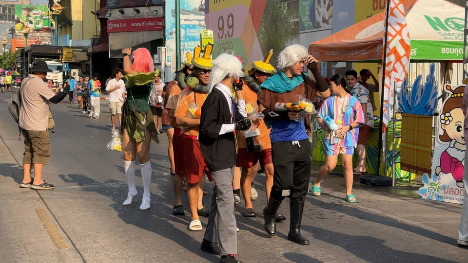 นักท่องเที่ยวไทย-เทศ ท้าลมร้อนเกือบ 40 องศา แต่งคอร์สตูมเต็มยศ เล่นน้ำถนนข้าวเหนียวขอนแก่นคึกคัก ขณะที่ตำรวจเข้มงดจำหน่าย-ดื่ม เครื่องดื่มที่มีแอลกอฮอล์ตลอดแนวถนนข้าวเหนียวอย่างเข้มงวด