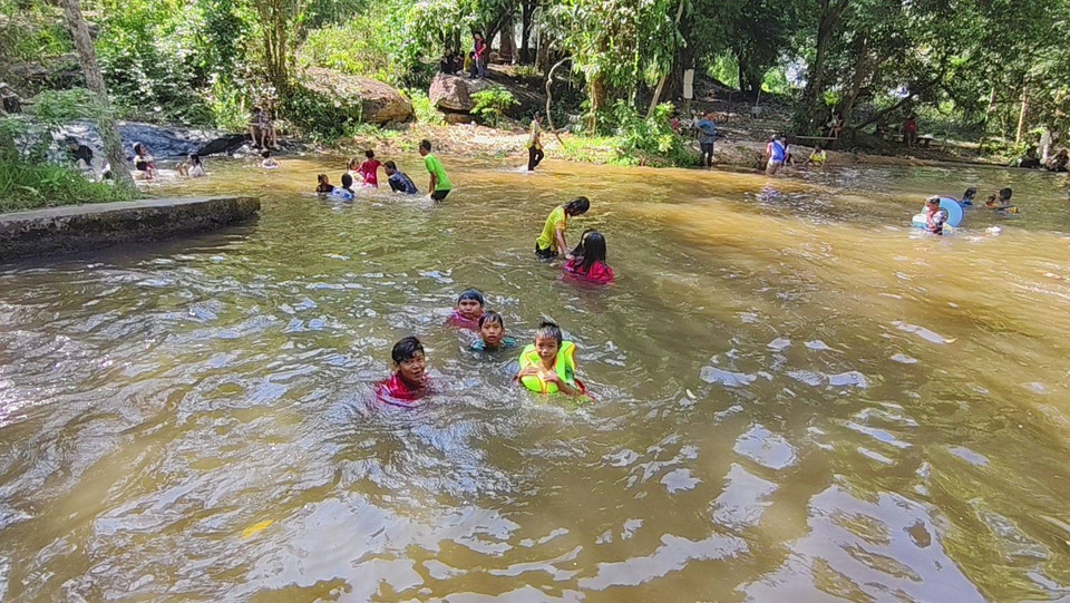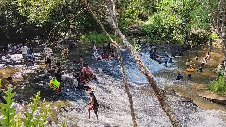 วันหยุดยาว เทศกาลสงกรานต์ บรรยากาศเป็นไปอย่างคึกคัก นักท่องเที่ยวทั้งในและนอกพื้นที่ต่างพาครอบครัว อุ้มลูกจูงหลาน หอบเสื่อ ห่วงยาง และอุปกรณ์เล่นน้ำ เดินทางมาปักหลักพักผ่อน เล่นน้ำคลายร้อน ท่ามกลางธรรมชาติอันร่มรื่นและสายน้ำใสเย็นที่ยังคงไหลตลอดแม้ในฤดูแล้ง นับเป็นจุดเด่นที่ทำให้น้ำตกแห่งนี้กลับมามีชีวิตชีวาอีกครั้ง