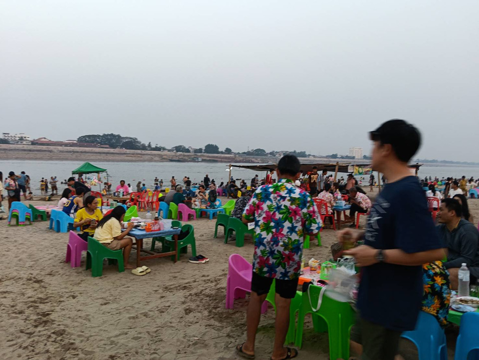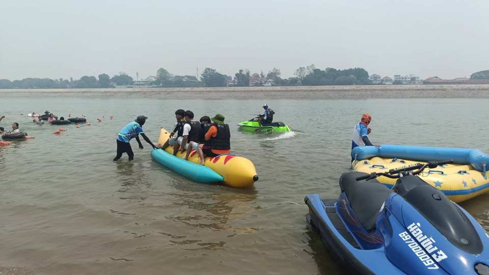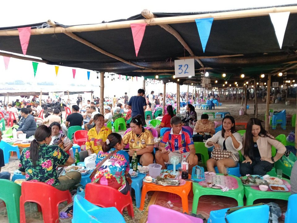 วันที่ 14 เม.ย. 2569 บรรยากาศ "หาดทรายทองบ้านหัวทราย" หมู่ที่ 11 ต.พานพร้าว อ.ศรีเชียงใหม่ จ.หนองคาย คับคั่งไปด้วยประชาชนชาวหนองคายและนักท่องเที่ยว ต่างมุ่งหน้าสู่"หาดทรายทองบ้านหัวทราย" ริมฝั่งโขง เพื่อหนีร้อนไปพึ่งเย็น ด้วยการลงเล่นน้ำคลายร้อนนั่งกินอาหารและชมวิวสองฝั่งโขง ซึ่งสงกรานต์ปีนี้อากาศร้อนมาก และมีฝุ่น PM 2.5 หนาแน่น มีการเดินทางท่องเที่ยวและกลับภูมิลำเนา และ"หาดทรายทองบ้านหัวทราย" หมู่ที่ 11 ต.พานพร้าว อ.ศรีเชียงใหม่ เป็นที่นิยมของนักท่องเที่ยวทั้งชาวไทยและชาวต่างชาติ ต่างพาครอบครัวไปนั่งรับประทานอาหาร เล่นน้ำคลายร้อนกันอย่างคึกคัก ทั้งเป็นการกระตุ้นเศรษฐกิจในพื้นที่ มีเม็ดเงินหมุนเวียนในช่วงสงกรานต์ เป็นที่น่าพอใจ โดยเฉพาะร้านอาหาร และร้านค้าให้เช่าอุปกรณ์เล่นน้ำ "หาดทรายทองบ้านหัวทราย" มีระดับน้ำที่ไม่ลึก เป็นหินกรวดปนทราย น้ำใส สะอาด ปลอดภัย จึงกลายเป็นแหล่งท่องเที่ยวช่วงฤดูร้อนที่สำคัญของจังหวัดหนองคาย เหมาะสำหรับการมาพักผ่อน เล่นน้ำ รับประทานอาหาร จนได้รับฉายาว่าเป็น "หาดพัทยา 2"