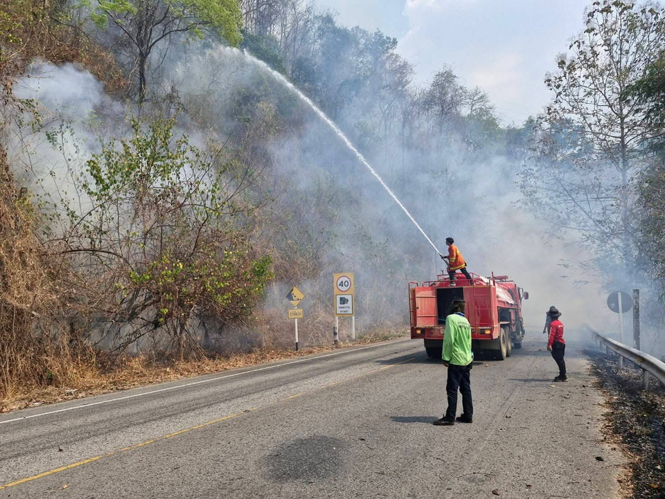 สนธิกำลังระดมเร่งควบคุมไฟป่าเขารัง ลมแรง-พื้นที่สูงชัน ทำไฟลุกลามวอด 50 ไร่