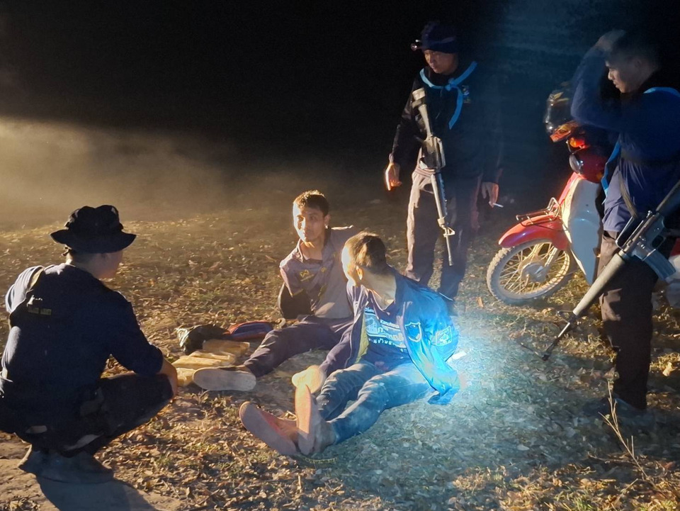 วันที่ 15 เม.ย. 69 ที่ บริเวณริมฝั่งแม่น้ำโขง บ.ไทยเจริญ ม.4 ต.พระพุทธบาท อ.ศรีเชียงใหม่ จ.หนองคาย ร.อ.ยุทธณา สีไชย์ ผบ.ร้อย.ฉก.ทพ.2110 ฉก.ทพ.21 บก.ควบคุมที่2(ร.13) กกล.สุรศักดิ์มนตรี ได้สั่งการให้จัดชุดปฏิบัติการทหารพราน ชป.4 - ชป.5 ทำการลาดตระเวนเฝ้าตรวจในเขตพื้นที่รับผิดชอบ ต. พระพุทธบาท อ.ศรีเชียงใหม่ ฯ กระทั่งเวลาประมาณ 21.00 น.(14 เม.ย.69) ตรวจพบเรือกีบติดเครื่องยนต์แล่นมาจากฝั่ง สปป.ลาว ข้ามแม่น้ำโขงมุ่งหน้ามาฝั่งไทย และเข้าจอดบริเวณริมฝั่งแม่น้ำโขง บ.ไทยเจริญ ม.4 ต.พระพุทธบาท อ.ศรีเชียงใหม่ ฯ และแล่นออกไปลอยลำอยู่กลางแม่น้ำโขง เจ้าหน้าที่จึงเฝ้าสังเกต ต่อมาพบว่ามีรถจักรยานยนต์ ฮอดด้า ซุปเปอร์คัพ สีชมพู-ขาว ไม่ติดแผ่นป้ายทะเบียน มีชายต้องสงสัยสองคนขับเข้ามา จากนั้นชายที่นั่งซ้อนท้ายได้ลงมาหยิบเอาวัตถุต้องสงสัยที่วางอยู่ริมฝั่งโขง เจ้าหน้าที่จึงแสดงตัวเข้าตรวจสอบ เมื่อทั้งสองเห็นเจ้าที่พยามจะหลบหนี เจ้าหน้าที่ได้ติดตามสามารถจับกุมตัวไว้ได้ และรายงาน ร.อ.ยุทธณา สีไชย์ ผบ.ร้อย.ฯ เพื่อประสานหน่วยงานความมั่นคงในพื้นที่ร่วมทำการตรวจสอบ พบว่าวัตถุต้องสงสัย 4 แพ็ค