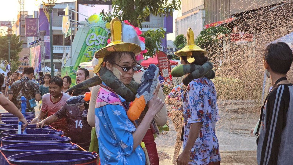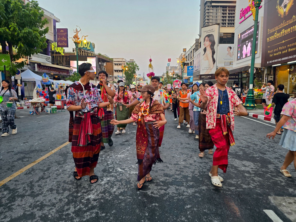 เมื่อเวลา 18.00 น.วันที่ 15 เม.ย.2569 ผู้สื่อข่าวรายงานว่าที่บริเวณเวทีกลางของ สสส. ซึ่งเครือข่ายองค์งดเหล้าภาคอีสานตอนบน โดยสภาเด็กและเยาวชนและแกนนำเยาวชนโนแอล ได้นำขบวนกลองยาวสาวโนแอล มาสร้างสีสันด้วยการประชันการฟ้อนรำวงหมอลำอย่างสนุกสนาน โดยมีนายวิษณุ ศรีทะวงศ์ ประธานมูลนิธิเครือข่ายพลังสังคม พร้อมด้วย พ.ต.ท.รัฐปิติ ประเสริฐสม สวญ.สถานีตำรวจท่องเที่ยวขอนแก่น นำนักท่องเที่ยวที่มาร่วมเล่นน้ำสงกรานต์ที่ถนนข้าวเหนียว ร่วมกันฟ้อนรำและเต้ยรำวงแบบสไตล์อีสานตลอดทั้งถนนข้าวเหนียว ท่ามกลางสีสันรอยยิ้มเสียงหัวเราะของนักท่องเที่ยวทั้งชาวไทยและชาวต่างชาติ ที่ต่างมาร่วมเต้ยรำวงและฟ้อนรำสไตล์อีสานกันอย่างพร้อมเพรียง เรียกเสียงฮือฮา รอยยิ้มและเสียงหัวเราะให้กับนักท่องเที่ยวอย่างมาก