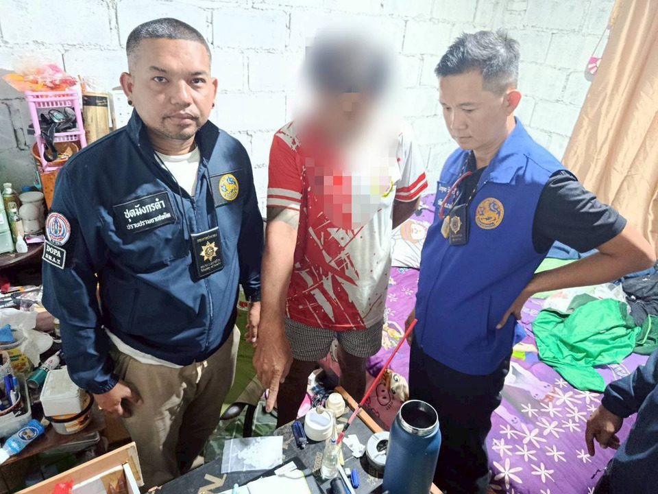 ต่อมาเจ้าหน้าที่ได้ขยายผลเข้าตรวจสอบบ้านเช่าไม่มีเลขที่ ภายในซอยเจริญพัฒนา 2 ต.ห้วยโป่ง อ.เมือง จ.ระยอง พบ นายสราวุธ หรือ “เบส” ยืนอยู่หน้าบ้านมีท่าทีพิรุธ จึงแสดงตัวเข้าตรวจค้น เบื้องต้นไม่พบสิ่งผิดกฎหมายในตัว แต่เมื่อสอบถามอย่างละเอียด ผู้ต้องหารับว่าซุกซ่อนยาเสพติดไว้ภายในห้องนอน