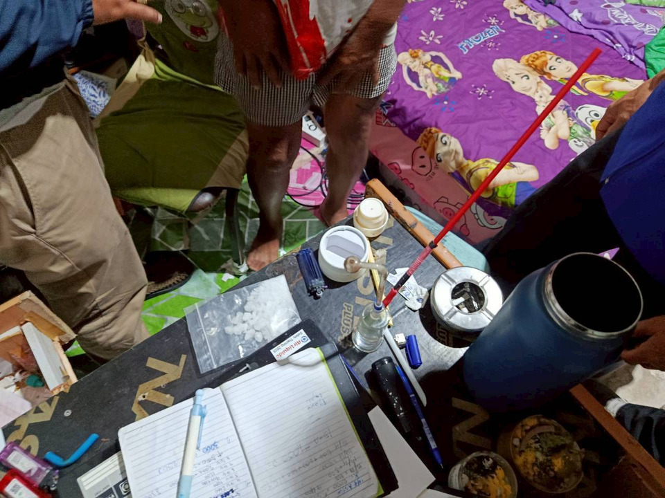 เจ้าหน้าที่จึงให้พานำตรวจค้น พบยาบ้าจำนวน 18 เม็ด ซุกอยู่ภายในลิ้นชักโต๊ะ พร้อมของกลางอื่นภายในห้องพัก จากการสอบสวน นายสราวุธรับว่า รับยาไอซ์มาจากเครือข่ายไม่ทราบชื่อ โดยใช้วิธีนัดวางของตามจุดต่าง ๆ แล้วส่งข้อความให้ไปรับ ครั้งละประมาณ 10 กรัม ในราคา 2,000 บาท ก่อนนำมาจำหน่ายในราคากรัมละ 400 บาท มีลูกค้าประจำในพื้นที่ อีกทั้งยังพบแชตการซื้อขายยาเสพติดในโทรศัพท์มือถือ และผลตรวจปัสสาวะเป็นบวกเช่นกัน