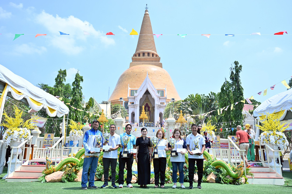 โอกาสนี้ ผู้ว่าราชการจังหวัดนครปฐม เป็นประธานมอบถ้วยรางวัล แก่ทีมผู้ชนะการแข่งขันตะกร้อลอดห่วง ทั้งทีมชายและทีมหญิง ในงานประเพณีสงกรานต์ ปี 2569 จากนั้นได้เข้าร่วมพิธี ถวายผ้าอาบน้ำฝน และสรงน้ำพระธรรมวชิรเจติยาจารย์ ผู้รักษาการแทนเจ้าอาวาสวัดพระปฐมเจดีย์ ราชวรมหาวิหาร พร้อมสรงน้ำพระสงฆ์ สามเณร โดยตลอดทั้งวันมีประชาชนและนักท่องเที่ยวทั้งชาวไทยและชาวต่างชาติเป็นจำนวนมาก ต่างเดินทางพาครอบครัวมากราบไหว้สักการะปิดทอง สรงน้ำพระร่วงโรจนฤทธิ์ฯ จำลอง สรงน้ำพระบรมสารีริกธาตุ ทำบุญถวายผ้าห่มองค์พระปฐมเจดีย์ และทำบุญถวายสังฆทาน เพื่อความเป็นสิริมงคล ส่งท้ายประเพณีสงกรานต์ ปี 2569