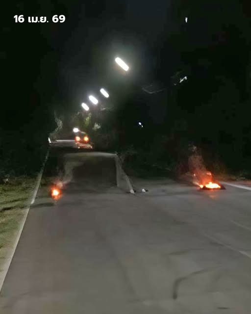 " เมื่อเวลาประมาณ 20.10 น วันนี้ 16 เมษายน 2569 เจ้าหน้าที่ตำรวจประจำสถานีตำรวจภูธรตากใบ จ.นราธิวาส รับแจ้งจากกำนันในพื้นที่ ต.เกาะสะท้อน มีเหตุเผายางรถจักรยานยนต์รวม 3 จุด บนถนนสายหลัก