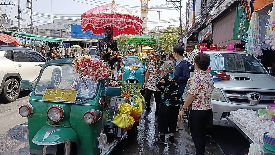 ภายหลังเสร็จสิ้นพิธีรดน้ำดำหัว เทศบาลเมืองศรีราชา ได้จัดขบวนรถแห่อัญเชิญสิ่งศักดิ์สิทธิ์คู่บ้านคู่เมืองศรีราชา ประกอบด้วย รูปหล่อหลวงพ่อผิว รูปหล่อหลวงพ่อทันใจ และท่านเจ้าพระยาสุรศักดิ์มนตรี (ผู้ก่อตั้งเมืองศรีราชา)