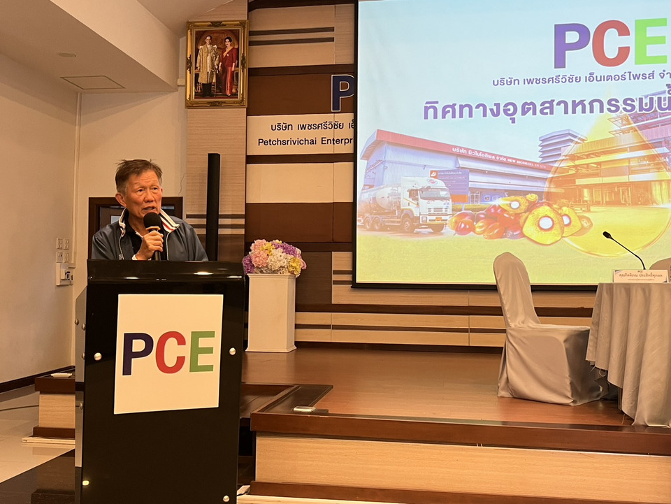 นายประกิต ประสิทธิ์ศุภผล ประธาเจ้าหน้าที่บริหารและกรรมการผู้จัดการใหญ่ พร้อมด้วย นายกิตติภณ ประสิทธิ์ศุภผล รองกรรมการผู้จัดการสายงานปฏิบัติการ บมจ.เพชรศรีวิชัย เอ็นเตอร์ไพรส์ (PCE) ผู้นำธุรกิจน้ำมันปาล์มครบวงจรระดับแนวหน้าของประเทศ ประกาศความพร้อมขานรับนโยบายภาครัฐห้ามส่งออกน้ำมันปาล์มดิบ โดยชูยุทธศาสตร์การสร้างมูลค่าเพิ่ม (Value-Added) ผ่านโครงสร้างธุรกิจที่แข็งแกร่งตั้งแต่ต้นน้ำถึงปลายน้ำ พร้อมกางโรดแมป 4 กลยุทธ์หลักเพื่อขับเคลื่อนองค์กรสู่ความยั่งยืน และเดินหน้าขยายอาณาจักรค้าปลีกส่งน้ำมันพืช รินทิพย์ เข้าสู่ 7-Eleven ทั่วประเทศ