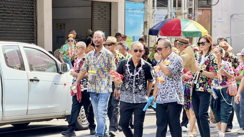 วันที่ 17 เม.ย.69 ผู้สื่อข่าวรายงานว่า บรรยากาศการเล่นสงกรานต์ ใน อ.สัตหีบ โดยวันนี้ เป็นวันไหลของตลาดสัตหีบ อำเภอสัตหีบ จ.ชลบุรี นายณัฐวุฒิ อนุโยธา นายอำเภอสัตหีบ พร้อมด้วย นายวสรร เซี่ยงฉี นายกเทศมนตรีเมืองสัตหีบ ได้ร่วมกันจัดกิจกรรมวันไหล โดยมีเจ้าหน้าที่ตำรวจสัตหีบ สารวัตรทหารเรือ ร่วมดูแลความปลอดภัย