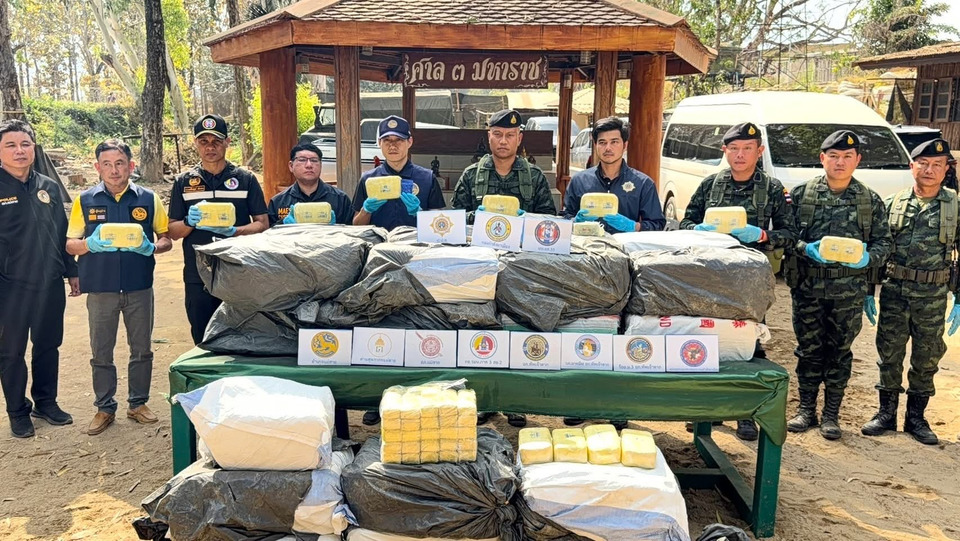 โดยในด้านการสกัดกั้นและปราบปรามยาเสพติด พบว่าจำนวนการจับกุมเพิ่มขึ้นจาก 878 ครั้ง ในปี 2568 เป็น 907 ครั้ง ในปี 2569 (เพิ่มขึ้น 29 ครั้ง) ขณะที่จำนวนผู้ต้องหาเพิ่มขึ้นจาก 1,142 คน เป็น 1,210 คน (เพิ่มขึ้น 68 คน) โดยจำแนกตามประเภทของยาเสพติด พบการสกัดกั้นเพิ่มขึ้นอย่างมีนัยสำคัญ ได้แก่ ยาบ้าเพิ่มขึ้นจาก 267,242,467 เม็ด เป็น 526,754,168 เม็ด (เพิ่มขึ้นกว่า 259 ล้านเม็ด), ยาอีเพิ่มขึ้นจาก 5,163 เม็ด เป็น 100,439 เม็ด, Happy Water เพิ่มขึ้นจาก 344 ซอง เป็น 3,144 ซอง, ไอซ์เพิ่มขึ้นจาก 14,815 กิโลกรัม เป็น 20,692 กิโลกรัม, คีตามีนเพิ่มขึ้นจาก 1,352 กิโลกรัม เป็น 2,412 กิโลกรัม และฝิ่นเพิ่มขึ้นจาก 46 กิโลกรัม เป็น 181 กิโลกรัม