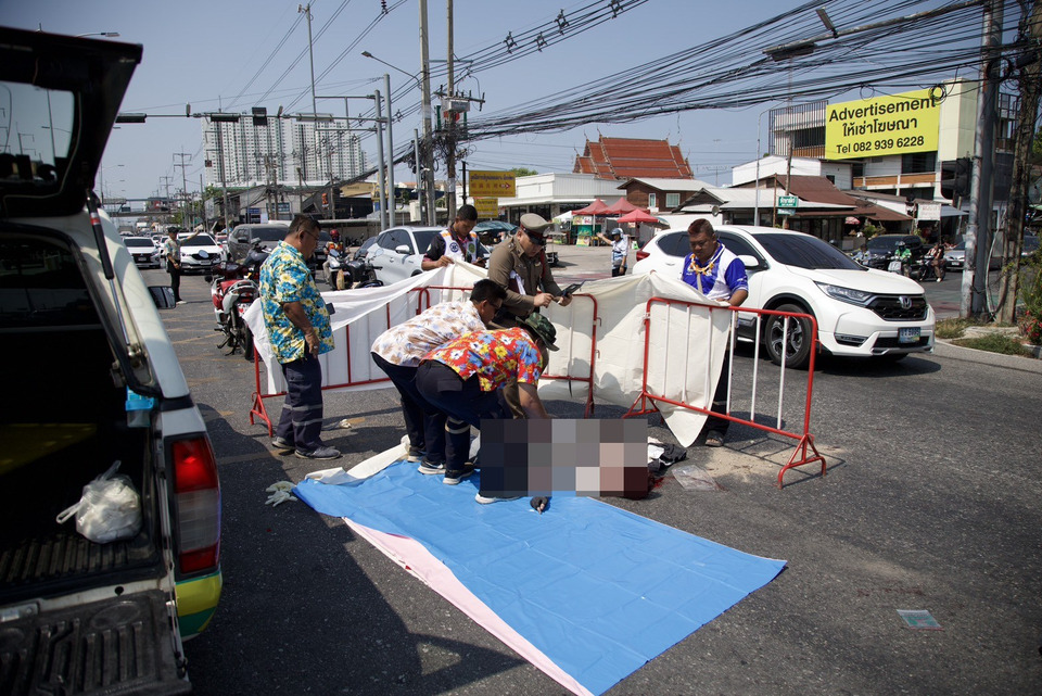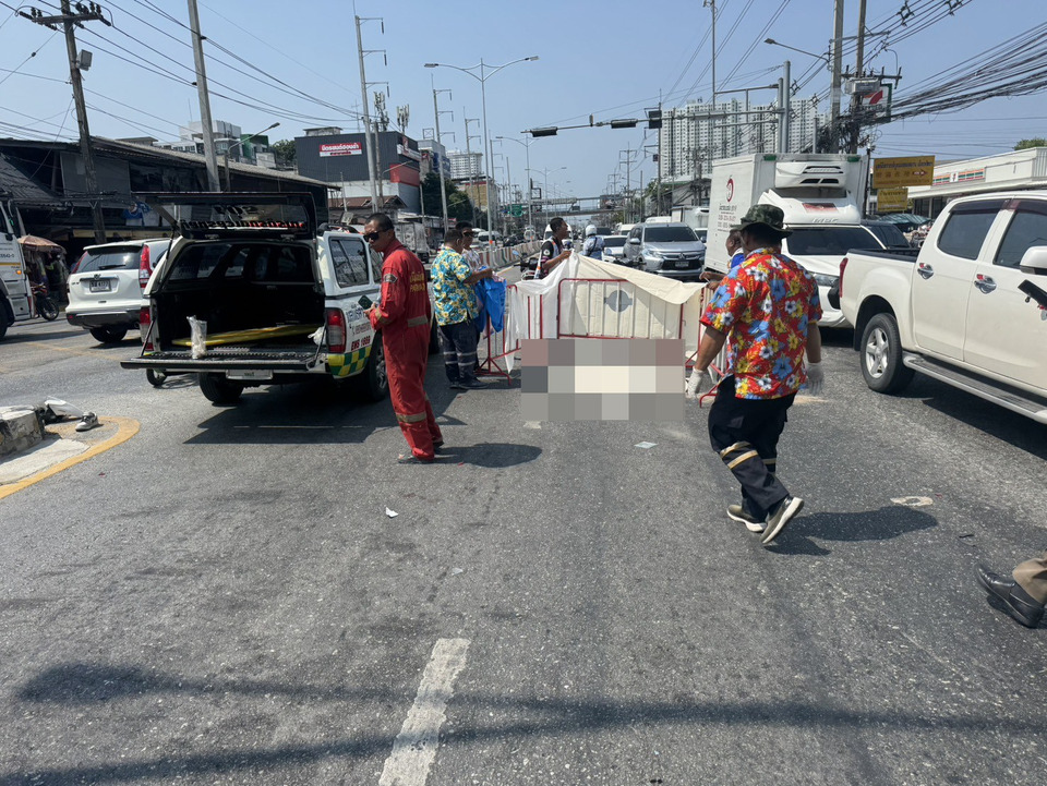 สังเวยศพแรก วันไหลนาเกลือพัทยา จยย.พุ่งชนสองแถวสนั่นกลางแยกไฟแดงดับคาที่