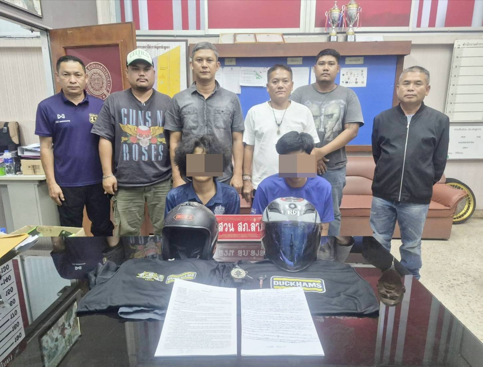 พ.ต.ท.อิทธิกร สง่ากร สว.สส.สภ.ลำลูกกา พร้อมชุดจับกุมคู่หู รวบ บอส ฟ้าง ทหัยราษฏร์ หลังตระเวนลักรถมอเตอร์ไซค์ไป 2 คัน สารภาพสิ้นก่อเหตุหลายครั้งหลายพื้นที่ มาจนมุมสืบลำลูกกา ฝ่ายสืบสวน สภ.ลำลูกกา จับกุมผู้ต้องหา 2 ราย หลังก่อเหตุลักรถจักรยานยนต์จำนวน 2 คัน ใน ก่อนที่ฝ่ายสืบสวนจะติดตามจับกุมตัวได้เมื่อวันที่ เมื่อวันที่ 17 เม.ย.69 ที่ผ่านมา พ.ต.ท.อิทธิกร สง่ากร สว.สส.สภ.ลำลูกกา พร้อมชุดสืบ สภ.ลำลูกกา ลงพื้นที่ ห้องพักย่าน ถ.หทัยราษฎร์ กทม. บุกจับกุมผู้ก่อเหตุลักรถจักรยานยนต์ 2 รายคือ นายวุฒิชัย หรือบอส อายุ 20 ปี นายวงศธร หรือฟ้าง อายุ 23 ปี พร้อมตรวจยึดของกลางเป็น หมวกกันน็อคสีดำ มีลายคาดสีส้ม ยี่ห้อ INDEX เสื้อยืดคอกลม สีดำ มีตัวอักษรสีขาวคำว่าว่า DUCKHAMS กางเกงขาสั้น 3 ส่วน สีกรมท่า หมวกกันน็อคสีเทา มีลายคาดสีแดง ยี่ห้อ RD จักรยานยนต์ ยี่ห้อฮอนด้า รุ่นเวฟ 125 ใส่กับชุดแฟริงสีนำเงิน ไม่ติดป้ายทะเบียน รถจักรยานยนต์ ยี่ห้อฮอนด้า รุ่น GIORNO สีฟ้า ติดป้ายทะเบียน 9ขล 651 กรุงเทพ พร้อมด้วยกุญแจและชุดรีโมท รวมถึงของกลางอื่นๆอีกหลายรายการ