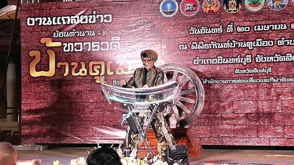 วันที่ 20 เม.ย.69 ที่หน้าพิพิธภัณฑ์บ้านคูเมือง ตำบลห้วยชัน อำเภออินทร์บุรี จังหวัดสิงห์บุรี นายวราดิศร อ่อนนุช ผู้ว่าราชการจังหวัดสิงห์บุรี เป็นประธานในการแถลงข่าว งานย้อนตำนานทวารวดีเมืองโบราณบ้านคูเมือง ประจำปี พ.ศ.2569 โดยมีนายปฏิญญา สันติชาติงาม ท่องเที่ยวและกีฬาจังหวัดสิงห์บุรี พลตำรวจตรีชัยรพ จุณณวัตต์ ผู้บังคับการตำรวจภูธรจังหวัดสิงห์บุรี นายแพทย์วิญญู จันทร์เนตร นายแพทย์สาธารณสุขจังหวัดสิงห์บุรี นายสมศักดิ์ เกี้ยวเกิด นายอำเภออินทร์บุรี ร่วมแถลงข่าว พร้อมด้วยหัวหน้าส่วนราชการ นายกองค์การบริหารส่วนตำบลห้วยชัน ท่องเที่ยวและกีฬาจังหวัดอ่างทอง สื่อมวลชน และประชาชนเข้าร่วมในการแถลงข่าว