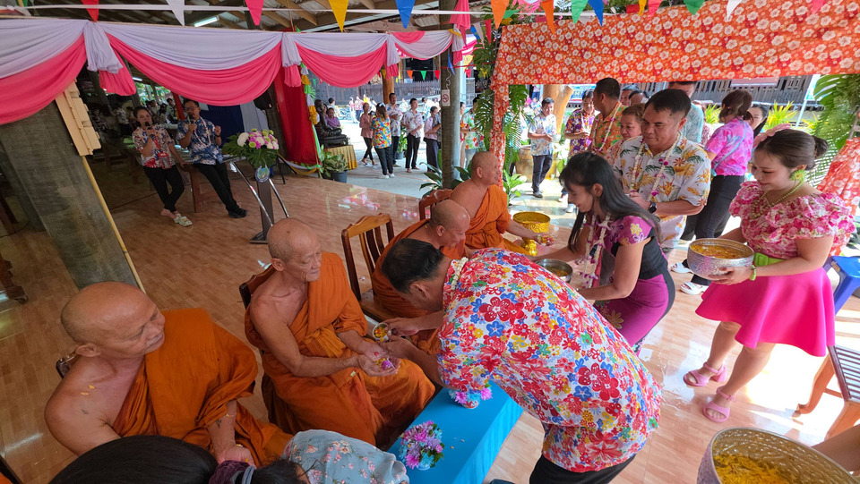เมื่อเวลา 07.30 น. วันที่ 21 เม.ย.69 ที่วัดทับมา ต.ทับมา อ.เมือง จ.ระยอง นายสุทิน แก้วประถม รองนายกเทศมนตรีตำบลทับมา นำผู้บริหาร เจ้าหน้าที่เทศบาล และพี่น้องประชาชนชาวตำบลทับมา ทำบุญถวายภัตตาหารพระสงฆ์ สรงน้ำพระพุทธรูป พระสงฆ์ เพื่อความเป็นสิริมงคล และรดน้ำขอพรผู้สูงอายุ วันไหลสงกรานต์ตำบลทับมา เพื่อสืบสานประเพณีสงกรานต์ ประจำปี 2569 โดยมีวัตถุประสงค์ เพื่อให้เยาวชน และประชาชนได้ตระหนัก และอนุรักษ์สืบสานวัฒนธรรมประเพณีสงกรานต์ของไทยให้คงอยู่ รวมทั้งสร้างความรัก ความสามัคคี ความร่วมมือร่วมใจของพี่น้องประชาชนในชุมชนอีกด้วย