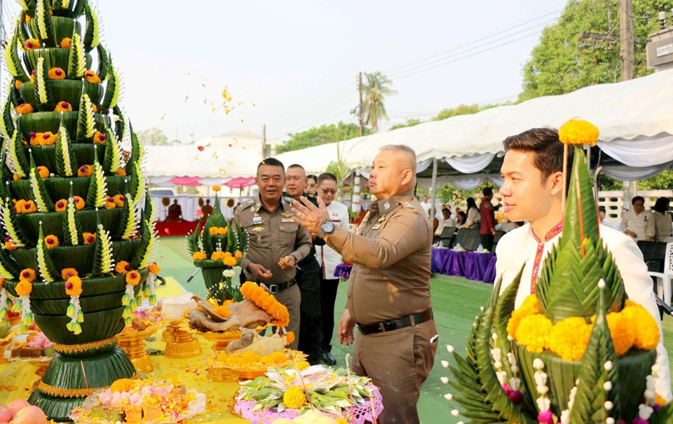 โดยมีพระเมธีวัชราจารย์,ดร.เจ้าคณะ จ.กาฬสินธุ์ และคณะสงฆ์ พร้อมด้วยนางวรชาดา เข็มธนเพ็ชร นายกเหล่ากาชาด จ.กาฬสินธุ์ นายธนภัทร ณ ระนอง รองผู้ว่าราชการ จ.กาฬสินธุ์ นายผดุงศักดิ์ อิ่มเอิบ รองผู้ว่าราชการ จ.กาฬสินธุ์ พล.ต.ต.ทรงพล บริบาลประสิทธิ์ ผบก.ภ.จว.กาฬสินธุ์พ.อ.สิทธิศักดิ์ พรหมดิเรก รองผอ.รมน.กาฬสินธุ์ รองผอ.รมน.กาฬสินธุ์ นายสันติ จัตุพันธ์ ปลัด จ.กาฬสินธุ์