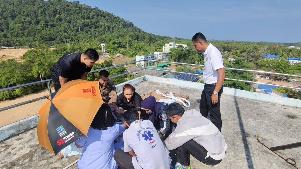 เมื่อวันที่ 24 เม.ย.69 นายดำรง ฉิมทับ นายอำเภอตะกั่วป่า พร้อมด้วย นายแพทย์สมพร สหจารุพัฒน์ ผู้อำนวยการโรงพยาบาลตะกั่วป่า กำลังเจ้าหน้าที่ตำรวจ สภ.ตะกั่วป่า หน่วยกู้ภัยตอบโต้ภัยพิบัติจังหวัดพังงา หน่วยกู้ภัยสว่างเมฆาตะกั่วป่า ได้เข้าช่วยเหลือหญิงสาว นางสาวอ้อม ฯ นามสมมุติอายุ 42 ปี อาศัยในพื้นที่ อ.กะปง จ.พังงา เข้ามารักษาตัวที่โรงพยาบาลเมื่อคืนที่ผ่านมา และเกิดอาการเครียดและพยายามจะกระโดดจากระเบียงตึกชั้น 6 ของอาคารผู้ป่วย โชคดีที่ทีมบุคลากรทางการแพทย์ เจ้าหน้าที่ตำรวจ และหน่วยกู้ภัย สามารถเข้าเกลี้ยกล่อมกดดันนานนับชั่วโมง ก่อนอาศัยจังหวะเผลอเข้าชาร์จตัวนำกลับเข้าสู่อาคารได้อย่างปลอดภัยท่ามกลางความโล่งใจของทุกคนในที่เกิดเหตุ