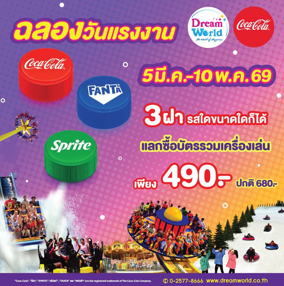 วันที่ 24 เมษายน 2569 ผู้สื่อข่าวรายงานว่า สวนสนุกดรีมเวิลด์ ตำบลบึงยี่โถ อำเภอธัญบุรี จังหวัดปทุมธานี จัดกิจกรรมรับช่วงวันหยุดยาววันแรงงานและวันฉัตรมงคล ระหว่างวันที่ 1–4 พฤษภาคม 2569 ชูโปรโมชั่นบัตรผ่านประตูพร้อมเครื่องเล่นในราคา 490 บาท เมื่อผู้ใช้บริการนำฝาเครื่องดื่มโค้ก แฟนต้า หรือสไปรท์ จำนวน 3 ฝา มาแลกรับส่วนลด จากราคาปกติ 680 บาท ใช้ได้ทั้งเด็กและผู้ใหญ่