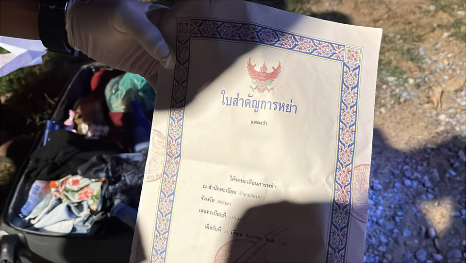 จากนั้นเจ้าหน้าที่ได้ทำการตรวจสอบกระเป๋าดังกล่าวอย่างระมัดระวัง ท่ามกลางสายตาประชาชนที่เฝ้าดูเหตุการณ์อย่างลุ้นระทึก ก่อนเปิดออกมาถึงกับต้องอึ้งไปตาม ๆ กัน เมื่อพบว่า ภายในกระเป๋าไม่มีวัตถุอันตรายแต่อย่างใด แต่กลับเป็นเสื้อผ้าจำนวนมากยัดแน่นอยู่เต็มกระเป๋า และที่ทำให้หลายคนสะดุดใจคือ พบเอกสาร “ใบหย่า” ถูกพับเก็บไว้อยู่ภายใน