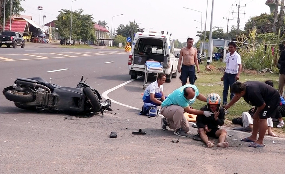 พนักงาน อบต.ผไทรินทร์ ขี่ จยย.รีบพาแฟนสาวไปไลฟ์สดแข่งขันฟุตบอล ถึง 4 แยกรถกระบะพุ่งออกมาชนสนั่นร่างกระเด็นเจ็บ 2 ผู้ใหญ่บ้าน เผยเกิดอุบัติเหตุเป็นประจำวอนหน่วยงานติดตั้งสัญญาณไฟจราจร