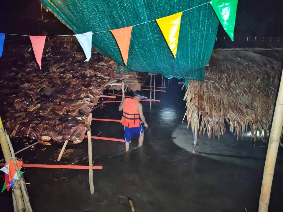 จากสถานการณ์ดังกล่าว เจ้าของซุ้มน้ำต่างเร่งขนย้ายอุปกรณ์และทรัพย์สินมีค่าออกจากพื้นที่กันอย่างโกลาหล พร้อมทั้งช่วยกันนำเชือกมัดซุ้มเข้าด้วยกัน และผลักกิ่งไม้หรือเศษซากที่ลอยมากับกระแสน้ำ เพื่อป้องกันไม่ให้พัดชนจนเกิดความเสียหาย