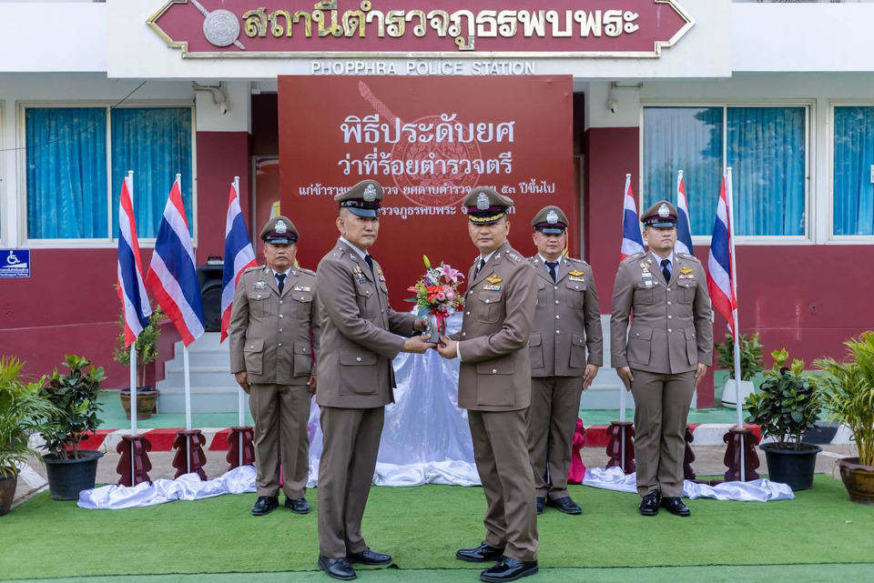 ผู้สื่อข่าวรายงานว่า ที่สถานีตำรวจภูธรพบพระ จังหวัดตาก พ.ต.อ.อนุสรณ์ ดังก้อง ผู้กำกับการสถานีตำรวจภูธรพบพระ เป็นประธานในพิธีประดับยศ “ว่าที่ร้อยตำรวจตรี” ให้แก่ข้าราชการตำรวจยศดาบตำรวจ อายุ 53 ปีขึ้นไป ซึ่งสำเร็จการฝึกอบรมตามหลักสูตรของสำนักงานตำรวจแห่งชาติ
