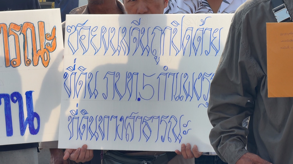 ป้ายที่นำมาแสดงมีข้อความระบุ เช่น “คืนทางสาธารณะให้ชาวบ้าน”, “ซอยขนมจีนถูกปิดด้วยที่ดิน ภบท.5”, “กำแพงรุกล้ำที่ดินทางสาธารณะ”, “ออกโฉนด น.ส.3 เกินจริง 30 ตร.ว.” และ “ชาวบ้านเดือดร้อน เข้า-ออกไม่ได้” โดยกลุ่มชาวบ้านเตรียมนำเอกสารหลักฐานยื่นต่อสำนักงาน ป.ป.ช. จังหวัดนครราชสีมา เพื่อขอให้ตรวจสอบกรณีพิพาทดังกล่าว