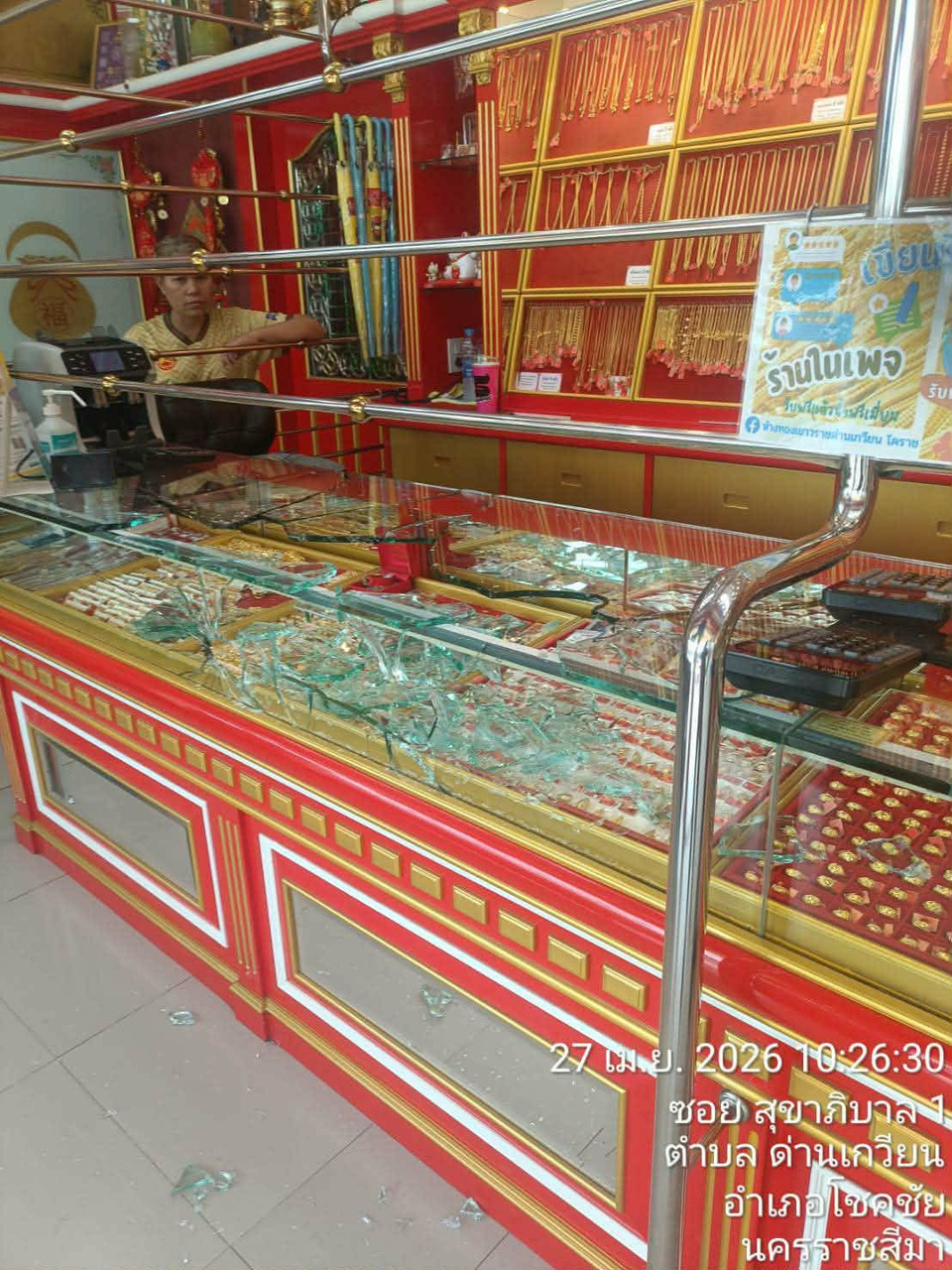 ทั้งนี้ เจ้าของร้านให้ข้อมูลว่า คนร้ายได้ทรัพย์สินเป็นแหวนทองคำ มูลค่าประมาณ 300,000 บาท โดยเหตุการณ์ดังกล่าวเกิดขึ้นอย่างรวดเร็ว และไม่มีการใช้อาวุธปืนยิงแต่อย่างใด อย่างไรก็ตาม เหตุการณ์นี้ถือเป็นการก่อเหตุอุกอาจกลางวันแสกหน้าในพื้นที่ชุมชน เจ้าหน้าที่ตำรวจอยู่ระหว่างเร่งตรวจสอบกล้องวงจรปิด และไล่ล่าตัวผู้ก่อเหตุมาดำเนินคดีตามกฎหมายโดยเร็ว