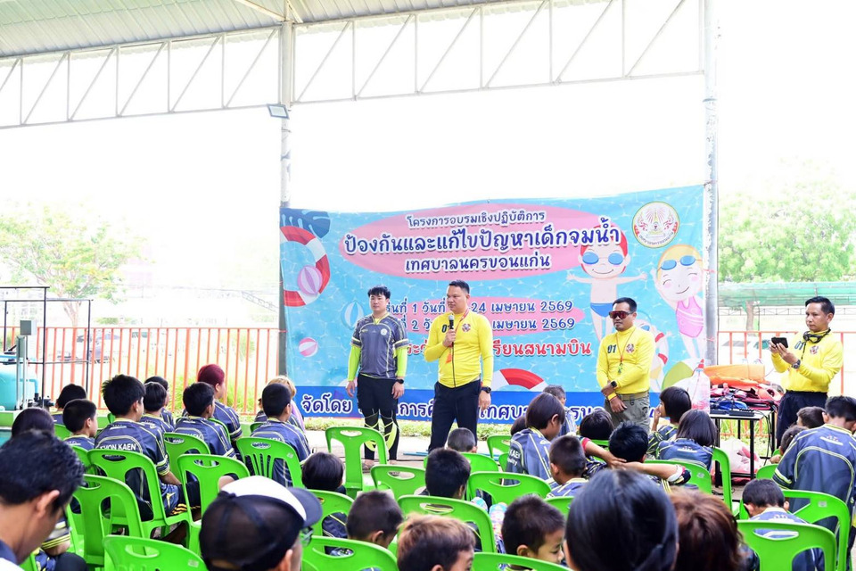 วันที่ 27 เม.ย.2569 เวลา 10.30 น.ที่สระว่ายน้ำโรงเรียนสนามบิน เขตเทศบาลนครขอนแก่น นายบุญฤทธิ์ พาณิชย์รุ่งเรือง รองนายกเทศมนตรีนครขอนแก่น เป็นประธานเปิดโครงการอบรมเชิงปฏิบัติการป้องกัน และแก้ไขปัญหาเด็กจมน้ำเทศบาลนครขอนแก่น รุ่นที่ 2 โดยมี พนักงานเทศบาลที่เกี่ยวข้อง, ผู้ปกครอง และเด็กเยาวชนผู้เข้ารับการฝึกอบรมร่วมกิจกรรมอย่างพร้อมเพรียง