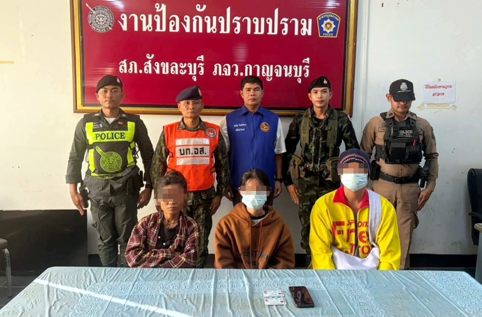 เจ้าหน้าที่ความมั่นคงสนธิกำลังหลายฝ่าย สกัดจับขบวนการลักลอบนำพาแรงงานต่างด้าวผิดกฎหมาย ในพื้นที่สังขละบุรี รวบผู้ต้องหา 3 ราย พร้อมของกลางบัตรประชาชนคนไทย 2 ใบ และโทรศัพท์มือถือ 1 เครื่อง เตรียมขยายผลถึงเครือข่าย