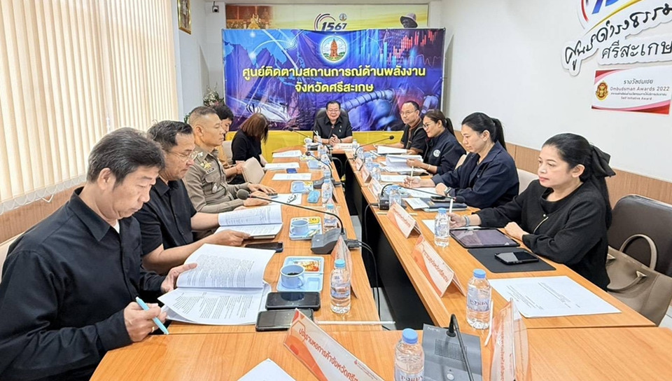 วันที่ 28 เม.ย.69 เวลา 10.30 น. ณ ห้องประชุมศรีลำดวน ศูนย์ดำรงธรรมจังหวัด ชั้น 1 ศาลากลางจังหวัดศรีสะเกษ นายอนุรัตน์ ธรรมประจำจิต ผู้ว่าราชการจังหวัดศรีสะเกษ ได้มอบหมายให้ นายธาตรี สิริรุ่งวนิช รองผู้ว่าราชการจังหวัดศรีสะเกษ เป็นประธานการประชุมคณะทำงานติดตามสถานการณ์ด้านพลังงานจังหวัดศรีสะเกษ ครั้งที่ 6/2569 เพื่อติดตามสถานการณ์ด้านพลังงานในพื้นที่จังหวัดศรีสะเกษ ทั้งด้านการผลิต การจำหน่าย และการใช้พลังงาน ตลอดจนสถานการณ์ราคาน้ำมันเชื้อเพลิง และแนวโน้มที่อาจส่งผลกระทบต่อประชาชน โดยมี พลังงานจังหวัด ขนส่งจังหวัด อุตสาหกรรมจังหวัด สรรพสามิตพื้นที่ศรีสะเกษ ผู้แทนปลัดจังหวัด ผู้แทนผู้บังคับการตำรวจภูธรจังหวัด ผู้แทนพาณิชย์จังหวัด ผู้แทนเกษตรจังหวัด คณะทำงาน และผู้เกี่ยวข้องร่วมการประชุมฯ
