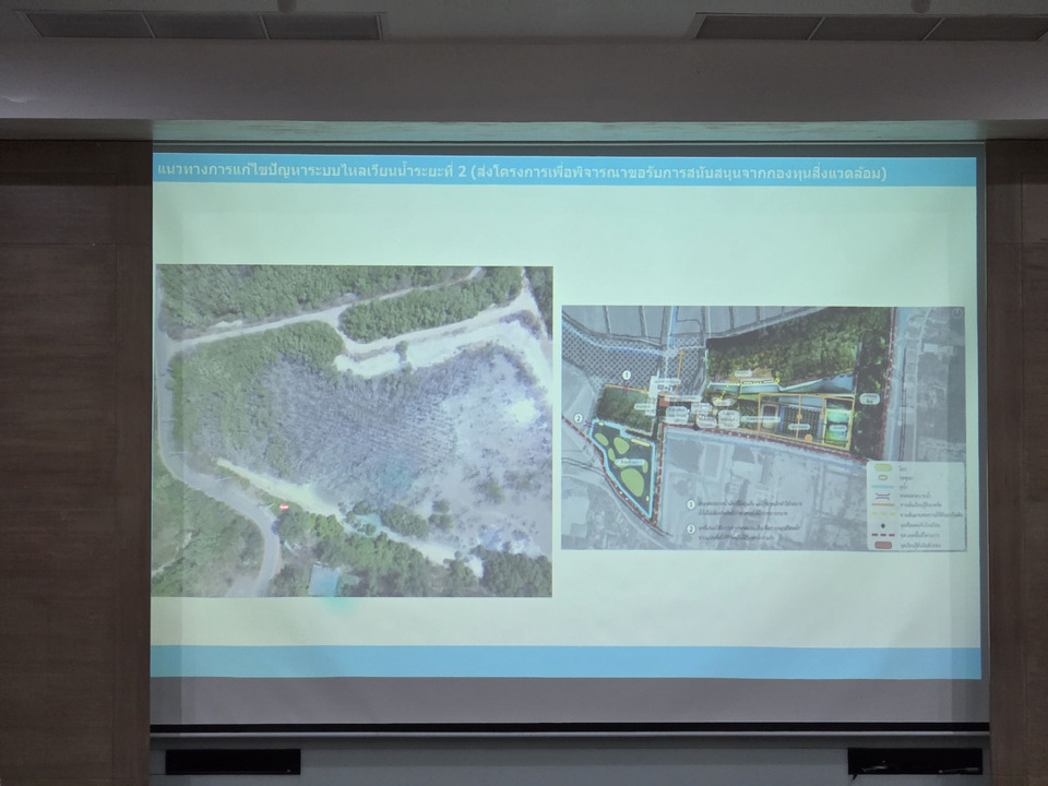 ที่ประชุมได้รับทราบความก้าวหน้าโครงการพัฒนาปรับปรุงระบบไหลเวียนน้ำ เพื่อแก้ไขปัญหาความเสื่อมโทรมของระบบนิเวศป่าชายเลนในพื้นที่ศูนย์ฯ โดยเสนอของบประมาณจากกองทุนสิ่งแวดล้อม วงเงินกว่า 4.9 ล้านบาท ปีงบประมาณ 2570–2571 พร้อมขอรับการสนับสนุนเพิ่มเติมจากบริษัท ปตท. จำกัด (มหาชน) อีก 500,000 บาท สำหรับดำเนินการขุดลอกคลอง วางร่องน้ำ และติดตั้งท่อลอดถนน 3 จุด เพื่อฟื้นฟูการไหลเวียนของน้ำในพื้นที่ หากโครงการสัมฤทธิ์ผล จะสามารถฟื้นฟูพื้นที่ป่าชายเลนแปลงใหญ่ อนาคตจะมีนกน้ำนานาชนิดเข้าไปอยู่อาศัยสร้างความอุดมสมบูรณ์ให้กับพื้นป่า ซึ่งที่ประชุมมีมติเห็นชอบในหลักการ