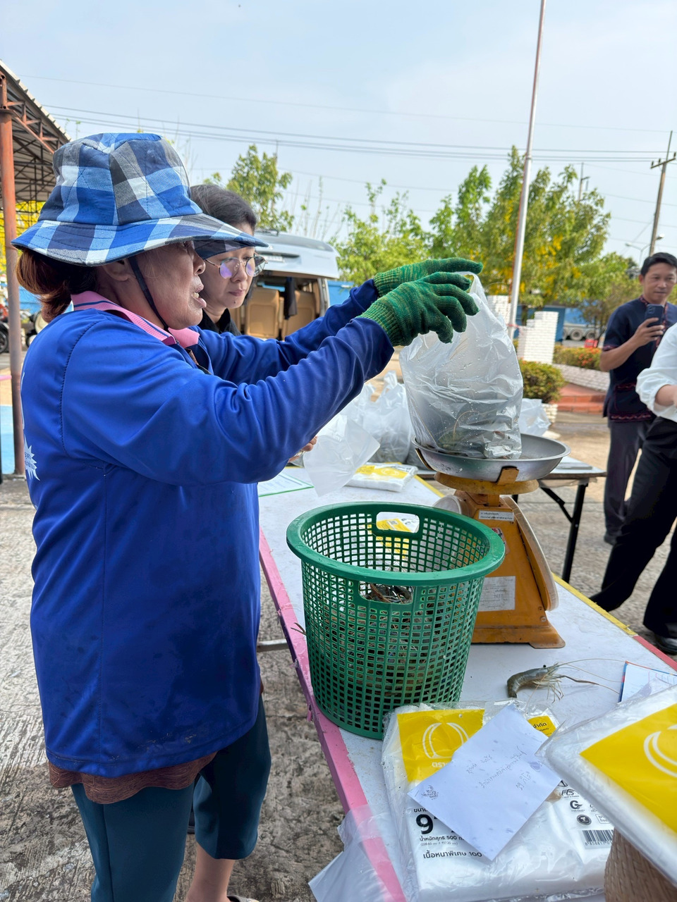ด้านนายสมทรัพย์ ภูนาสูง เกษตรกรผู้เลี้ยงกุ้ง บ้านตูม หมู่ 19 ต.บัวบาน อ.ยางตลาด จ.กาฬสินธุ์ เปิดเผยว่า ช่วงสงกรานต์ที่ผ่านมาเตรียมกุ้งไว้ประมาณ 3 ตัน แต่จำหน่ายได้เพียงราว 5% เท่านั้น จึงต้องเปิดร้านขายริมถนนในราคาลดพิเศษ 200–280 บาทต่อกิโลกรัม เพื่อระบายสินค้าโดยตรงถึงผู้บริโภค ทั้งนี้ได้รับการสนับสนุนจากผู้ว่าราชการจังหวัดกาฬสินธุ์ และสำนักงานพาณิชย์จังหวัด ในการเปิดพื้นที่จำหน่าย ทำให้สามารถระบายกุ้งได้เพิ่มขึ้น โดยในกิจกรรมครั้งนี้จำหน่ายในราคากิโลกรัมละ 250 บาท จำนวน 200 กิโลกรัม คิดเป็นมูลค่า 50,000 บาท