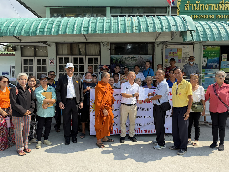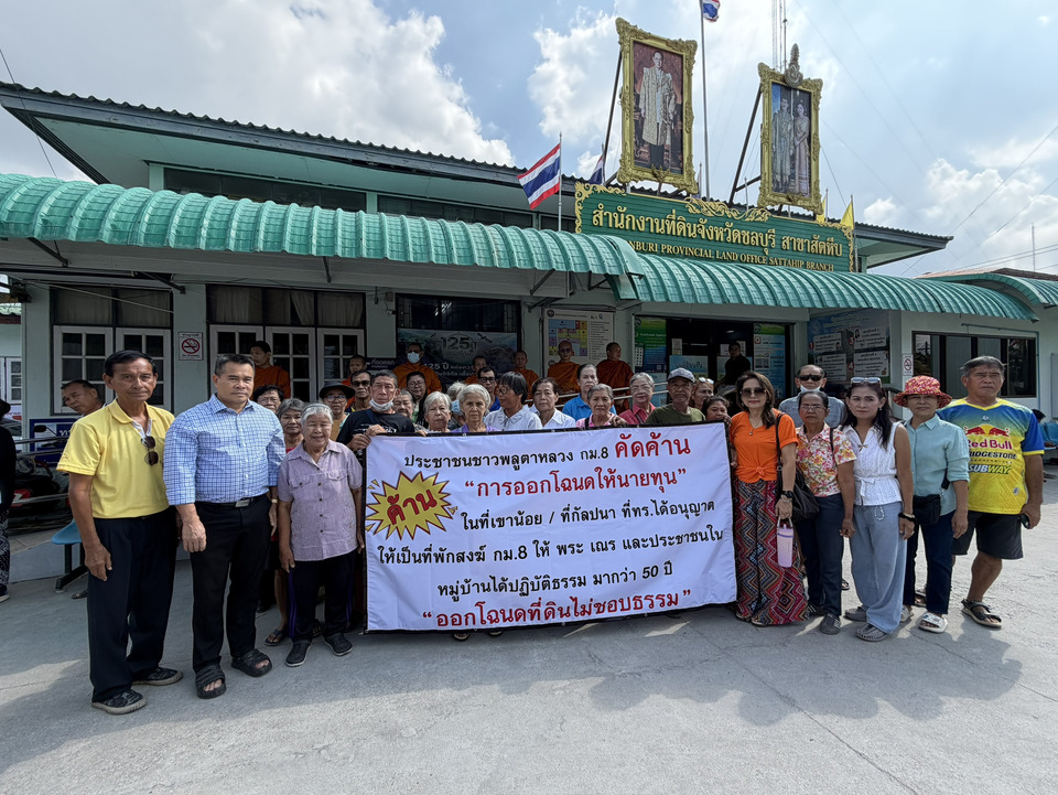 เมื่อวันที่ 29 เมษายน 2569 ที่สำนักงานที่ดินจังหวัดชลบุรี สาขาสัตหีบ พระแสงสุธี สุขุมาโล หัวหน้าสำนักปฏิบัติธรรม กม.8 ตำบลพลูตาหลวง อำเภอสัตหีบ พร้อมด้วย นาวาเอก คามิน มาแก้ว กรรมการสำนักปฏิบัติธรรม กม.8 คณะสงฆ์ และประชาชนกว่า 50 คน รวมตัวถือป้ายคัดค้านการออกโฉนดที่ดินให้เอกชนในพื้นที่ เขาน้อย/ที่กัลปนา โดยระบุว่า กองทัพเรือได้อนุญาตให้ใช้เป็นที่พักสงฆ์ กม.8 ให้พระภิกษุสามเณรและชาวบ้านปฏิบัติธรรมมากว่า 50 ปี และการออกโฉนดดังกล่าว เป็นการออกโฉนดที่ไม่ชอบธรรม ก่อนที่จะได้ยื่นหนังสือคัดค้านการออกโฉนดต่อเจ้าพนักงานที่ดิน หลังพบว่ามีการรังวัดขอออกโฉนด เนื้อที่ 6 ไร่ ซึ่งมีการรุกล้ำพื้นที่ของสำนักปฏิบัติธรรม จำนวน 2 งาน 59 ตารางวา โดยสำนักปฏิบัติธรรมเคยขอใช้ที่ดินทรงสงวนของกองทัพเรือ ประมาณปี 2515 เนื้อที่ 11 ไร่ 1 งาน 10 ตารางวา เพื่อเป็นที่พักสงฆ์และให้ชาวบ้านปฏิบัติธรรม