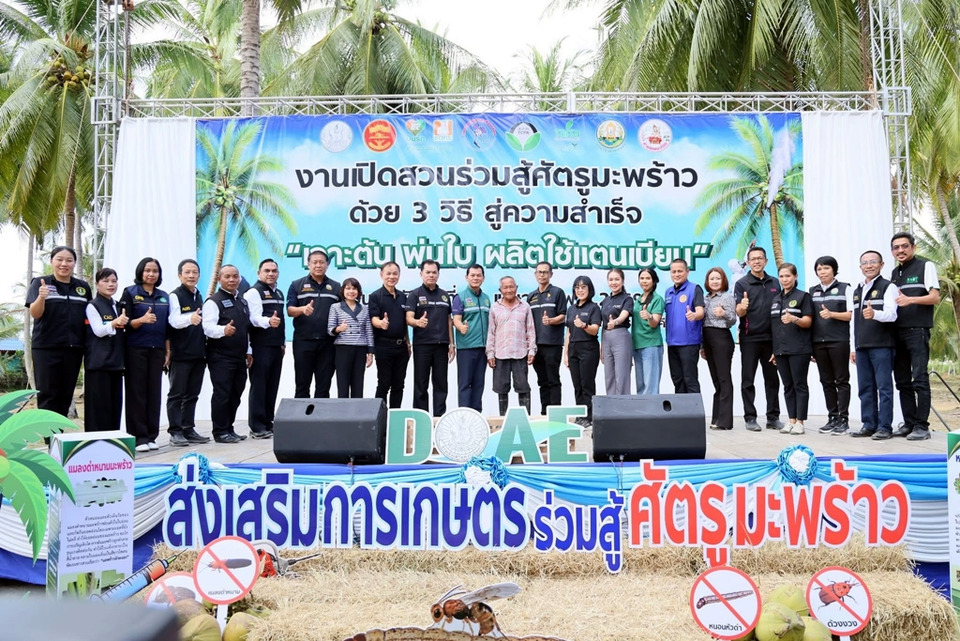วันที่ 30 เม.ย.69 นายวีรศักดิ์ บุญเชิญ รองอธิบดีกรมส่งเสริมการเกษตร เป็นประธานเปิดงาน “เปิดสวน ร่วมสู้ศัตรูมะพร้าว” ชู 3 วิธีสู่ความสำเร็จ “เจาะต้น พ่นใบ ผลิตใช้แตนเบียน” เดินหน้ามาตรการเชิงรุกช่วยเกษตรกรรับมือการระบาดของศัตรูมะพร้าวที่กำลังส่งผลกระทบต่อผลผลิตในหลายพื้นที่