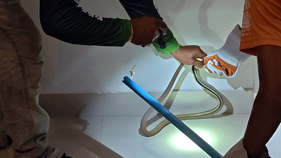 วันที่ 30 เม.ย.69 ผู้สื่อข่าวรายงานว่าบริเวณ เจ้าหน้าที่กู้ภัยสว่างอริยะได้รับแจ้งเหตุมีงูเข้าบ้าน จึงรีบลงพื้นที่ ช่วยชาวบ้าน บริเวณ บ้านเลขที่ 959 หมู่ 12 ตำบลพรหมณีอำเภอเมืองจังหวัดนครนายก พบเป็นบ้านหรู 2 ชั้น และได้เข้าไปสอบถามเจ้าของบ้านเพื่อสอบถามว่างูนั้นอยู่ที่ไหน ปรากฏว่า พอเข้าไปในบ้าน ก็ พบงูทางมะพร้าว ที่มีความยาวประมาณ2เมตรกว่า กำลังเลื้อยอยู่ในบ้าน แต่อากาศมันร้อน งูมันก็เลย เลื้อยเข้าหลังตู้เย็นเจ้าหน้าที่กู้ภัย ช่วยกันจับอย่างโกลาหล เพราะเจ้างูทางมะพร้าว มันเลื้อยขึ้น เข้าไปหลัง ตู้เย็น ต้องช่วยกันขยับตู้เย็นและเตรียมความพร้อมในการจับงู สักพักงูก็โผล่หัวออกมา และเลื้อยลงมาภายในห้องครัวชูคอจะฉก แต่ เจ้าหน้าที่กู้ภัย ก็สามารถ ใช้บ่วงจับ งูได้สำเร็จและปล่อยคืนสู่ธรรมชาติ
