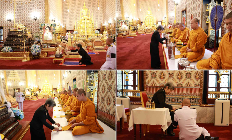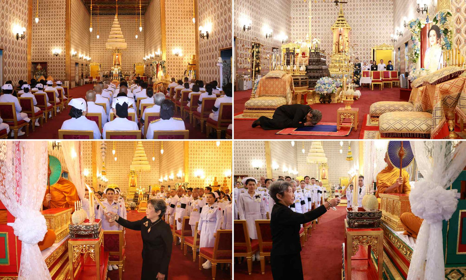 เมื่อเวลา 06.55 น. วันที่ 11 พ.ย.68 ท่านหญิงศรีสว่างวงศ์ บุญจิตราดุลย์ เป็นประธานบำเพ็ญพระราชกุศล ถวายพระบรมศพสมเด็จพระนางเจ้าสิริกิติ์ พระบรมราชินีนาถ พระบรมราชชนนีพันปีหลวง ณ พระที่นั่งดุสิตมหาปราสาท พระบรมมหาราชวัง