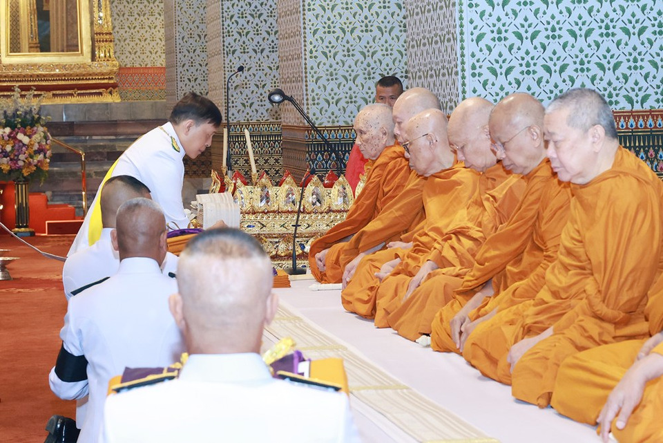 ที่หน้าพระแท่นพระนพปฎลมหาเศวตฉัตร สำหรับพระบรมอัฐิทรงธรรม พระธรรมวชิรญาณโสภณ ผู้ช่วยเจ้าอาวาสวัดบวรนิเวศวิหาร ถวายศีล และถวายพระธรรมเทศนา เรื่อง “มหาธีรราชจริยากถา” จบแล้ว พระบาทสมเด็จพระเจ้าอยู่หัว ทรงประเคนจตุปัจจัยไทยธรรมบูชากัณฑ์เทศน์ ทรงทอดผ้าไตร จำนวน ๑๖ ไตร และทรงถวายย่ามที่ระลึก ฯ แด่พระสงฆ์ที่สวดพระพุทธมนต์ และถวายพระธรรมเทศนา แล้วพระสงฆ์สดับปกรณ์พระบรมอัฐิ