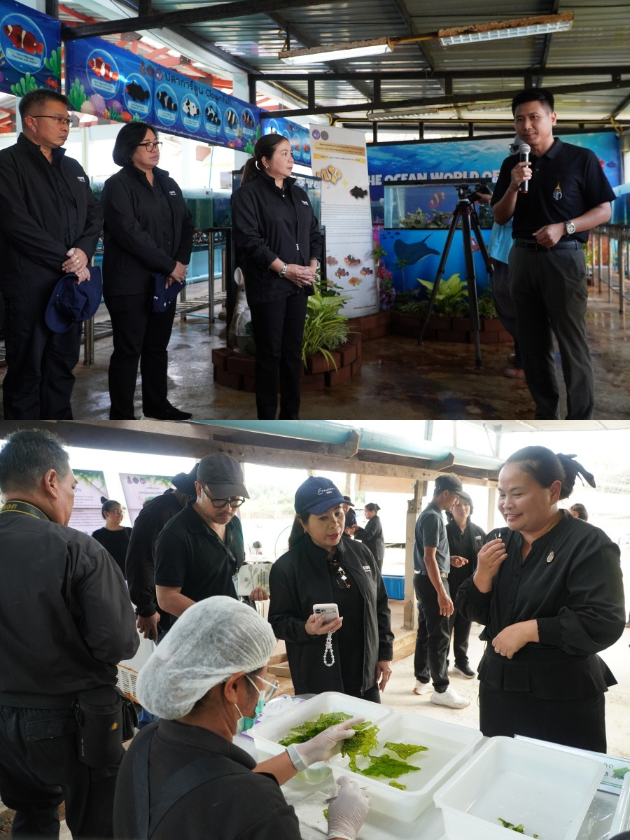 การเยี่ยมชมยังครอบคลุมงานเพาะเลี้ยงสาหร่ายทะเล ทั้งสาหร่ายพวงองุ่นและสาหร่ายผักกาดทะเล รวมถึงการเลี้ยงร่วมกับปูทะเลและปลากระบอกดำ ซึ่งเป็นต้นแบบฟาร์มเชิงนิเวศที่สร้างรายได้ให้ชุมชน และปิดท้ายด้วยการเยี่ยมชม “อาคารสิริพัฒนภัณฑ์” แหล่งรวมผลิตภัณฑ์คุณภาพจากศูนย์ฯ และชุมชน เช่น ผลิตภัณฑ์สาหร่ายทะเล ผักปลอดสารพิษ น้ำปลาแท้ กะปิแท้ และงานจักสาน ซึ่งช่วยสร้างงานและรายได้ให้ชุมชนฐานรากอย่างต่อเนื่อง