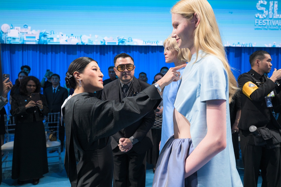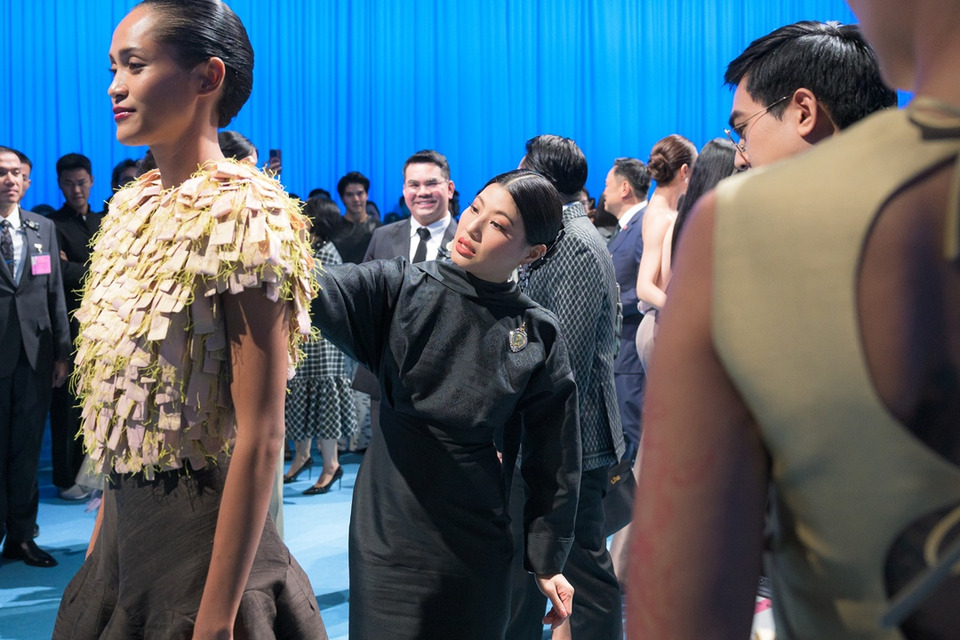 จากนั้นเสด็จทอดพระเนตรการแสดงแบบ “Sustainable Fashion Show” ที่ทรงร่วมสร้างสรรค์ผลงานแฟชั่นผ้าไทยร่วมกับ 30 ดีไซเนอร์ชั้นนำของประเทศ สร้างปรากฎการณ์ครั้งใหญ่ให้กับวงการแฟชั่นไทย และยกระดับผ้าไทยสู่สากลอย่างเต็มภาคภูมิ ไฮไลต์สำคัญของการแสดงแบบครั้งนี้คือแนวคิด “Sustainable Fashion” หรือแฟชั่นแห่งความยั่งยืน ผ่านการนำเสนอแฟชั่นผ้าไทยที่เป็นมิตรต่อสิ่งแวดล้อม ถ่ายทอดความงดงามวิจิตรบรรจง พร้อมเรื่องราวการเดินทางของเส้นใยธรรมชาติจากท้องถิ่นไทย สู่ผลงานการออกแบบตัดเย็บระดับโอต์กูตูร์ (Haute Couture) และสวมใส่ได้จริงในชีวิตประจำวัน รวม 66 ชุด ซึ่งพิสูจน์ที่ชัดเจนว่า “ผ้าไทย” ได้ก้าวข้ามขีดจำกัดเดิม ๆ สู่การเป็นผู้นำเทรนด์แฟชั่นโลกที่ยั่งยืน รวมทั้งแสดงให้เห็นว่า อุตสาหกรรมแฟชั่นไทยสามารถก้าวหน้าควบคู่ไปกับการรักษาสิ่งแวดล้อมและการกระจายรายได้สู่ชุมชนอย่างทั่วถึง โดยรายชื่อแบรนด์ที่ร่วมสร้างประวัติศาสตร์บนรันเวย์ในครั้งนี้ ได้แก่ SIRIVANNAVARI, KAI, TIRAPAN, PISIT, ATELIER PICHITA, NAGARA, THEATRE, TUBE GALLERY, ASAVA, WISHARAWISH, PYVET, CHAI GOLD LABEL, VATIT ITTHI, HOOK'S, ISSUE, MILIN, VICKTEERUT, JANESUDA, TANDT, ARCHIVE026, DISAYA, FAH CHACK WO+MAN, IRADA, LANDMEE, SHONE PUIPIA, MUSE, PAIN KILLER, SRETSIS, PATINYA, DRY CLEAN ONLY และ KLOSET